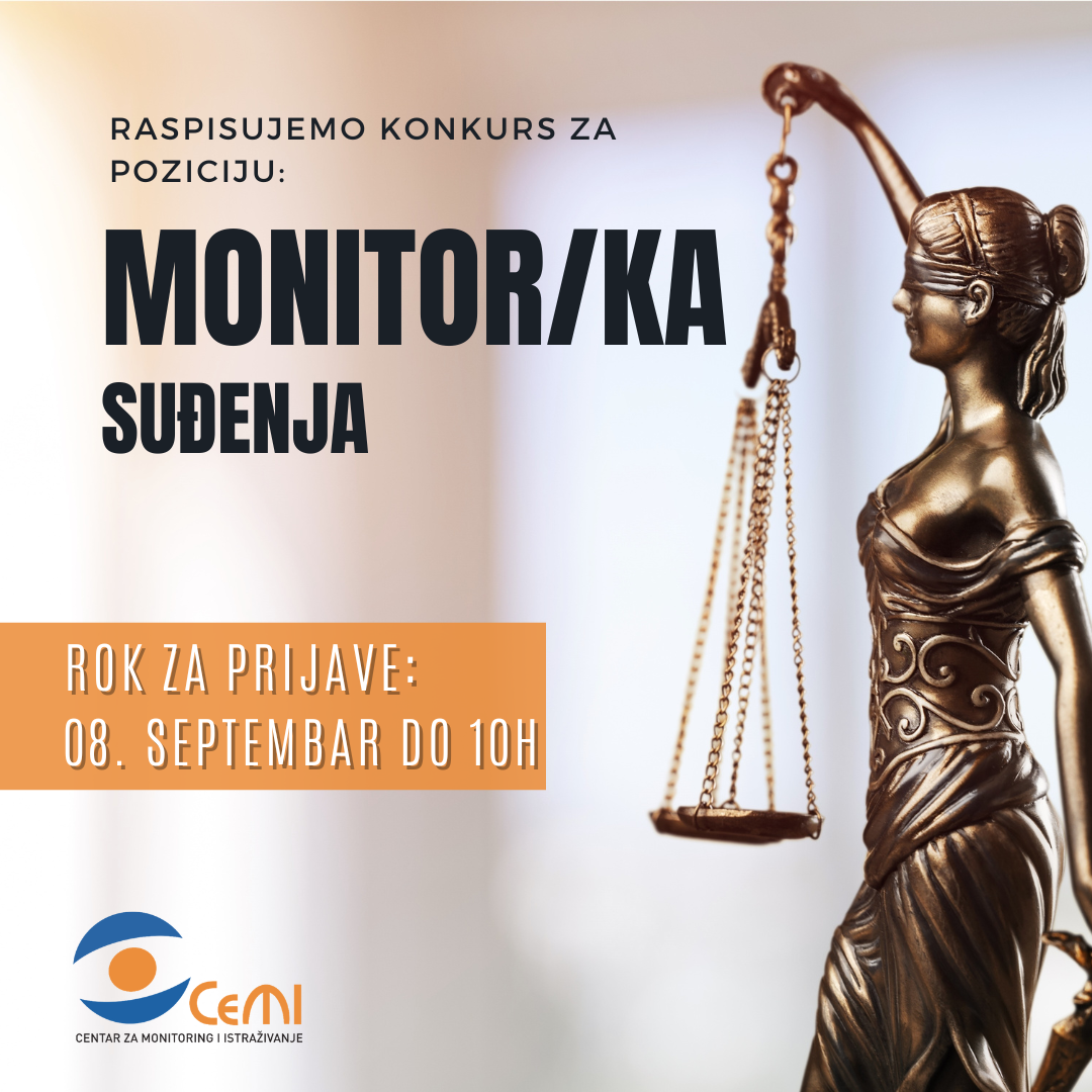 The selected trial monitor will be responsible for directly monitoring ongoing court proceedings in high-level corruption and organized crime cases, as well as analyzing the files of finalized court cases to conduct thematic research and prepare trial monitoring reports. The monitor will follow a standardized form during the monitoring process to ensure key aspects of the procedure related to fair trial standards are observed. Monitors will prepare individual reports for each monitored hearing and enter them into CeMI’s internal database for further research and comparative analysis.